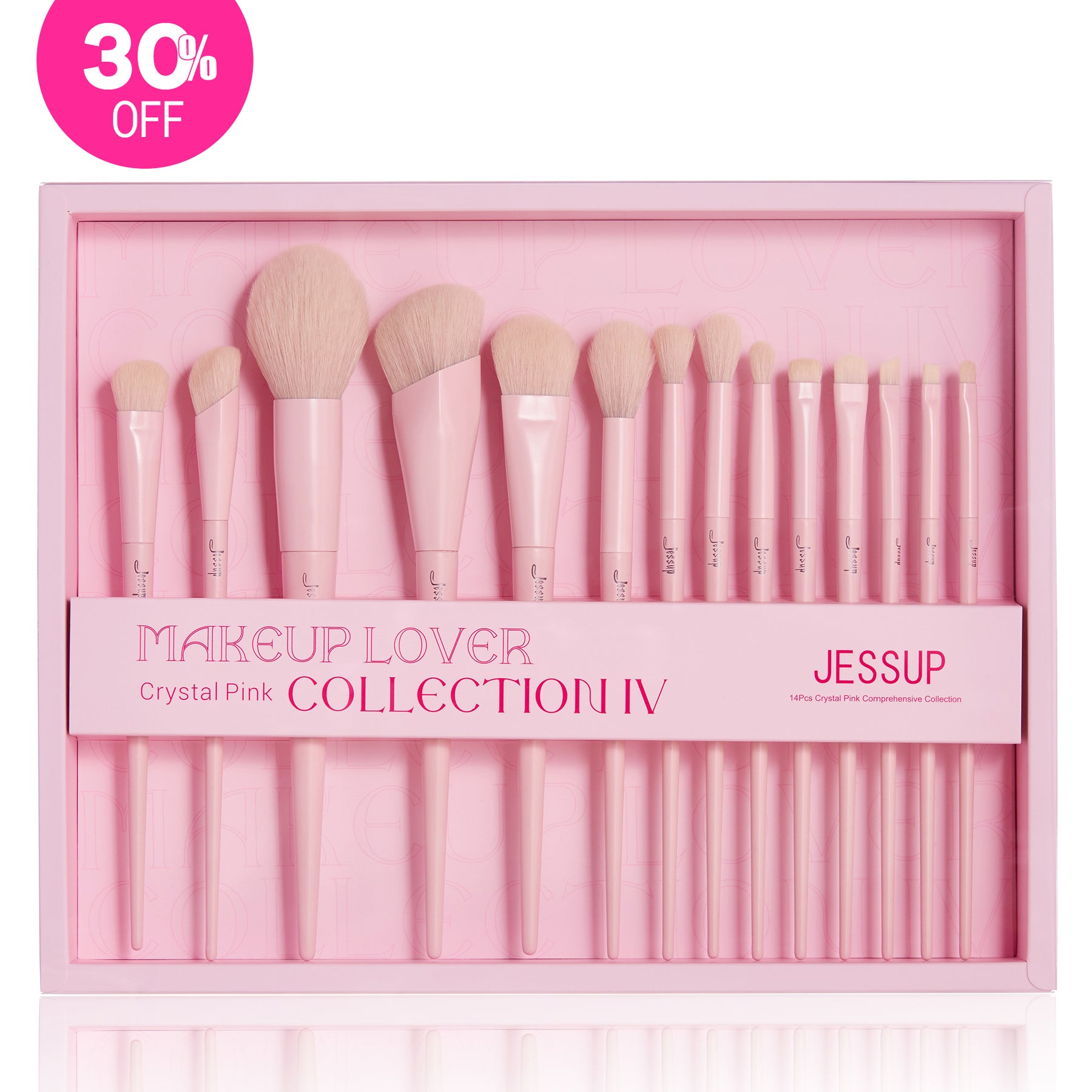مجموعة فرش مكياج جيسوب الوردية، 14 قطعة، فرش مكياج نباتية فاخرة، كريم أساس، خافي عيوب، أحمر خدود، ظلال عيون، محدد عيون، بودرة، هايلايتر، مجموعة فرش للوجه