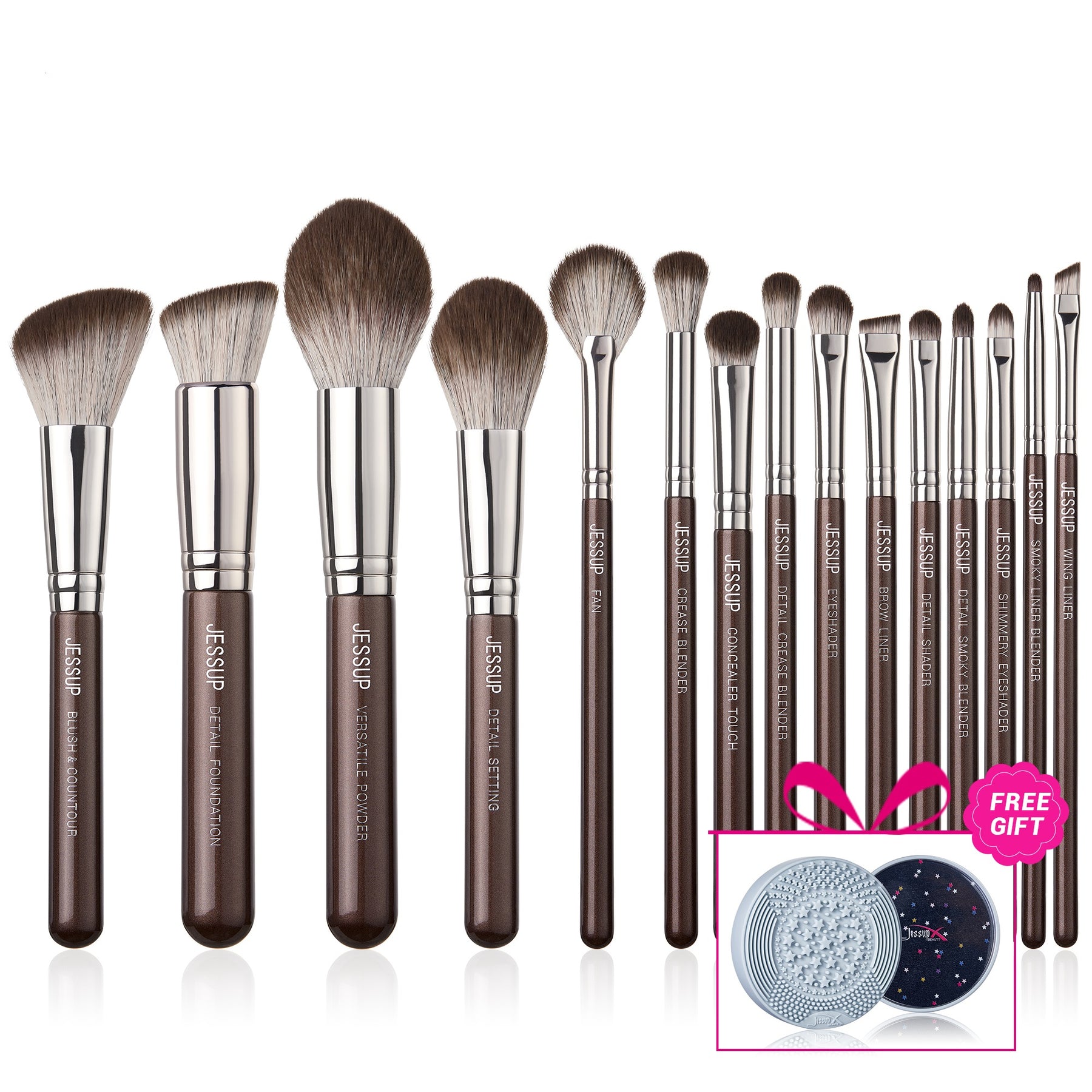 مجموعة فرش مكياج جيسوب، 15 قطعة، لون بني، احترافية، فاخرة، مصنوعة من مواد صناعية، كريم أساس، حواجب، خافي عيوب، أحمر خدود، ظلال عيون، كونتور، محدد عيون، بودرة، مزج، هايلايتر