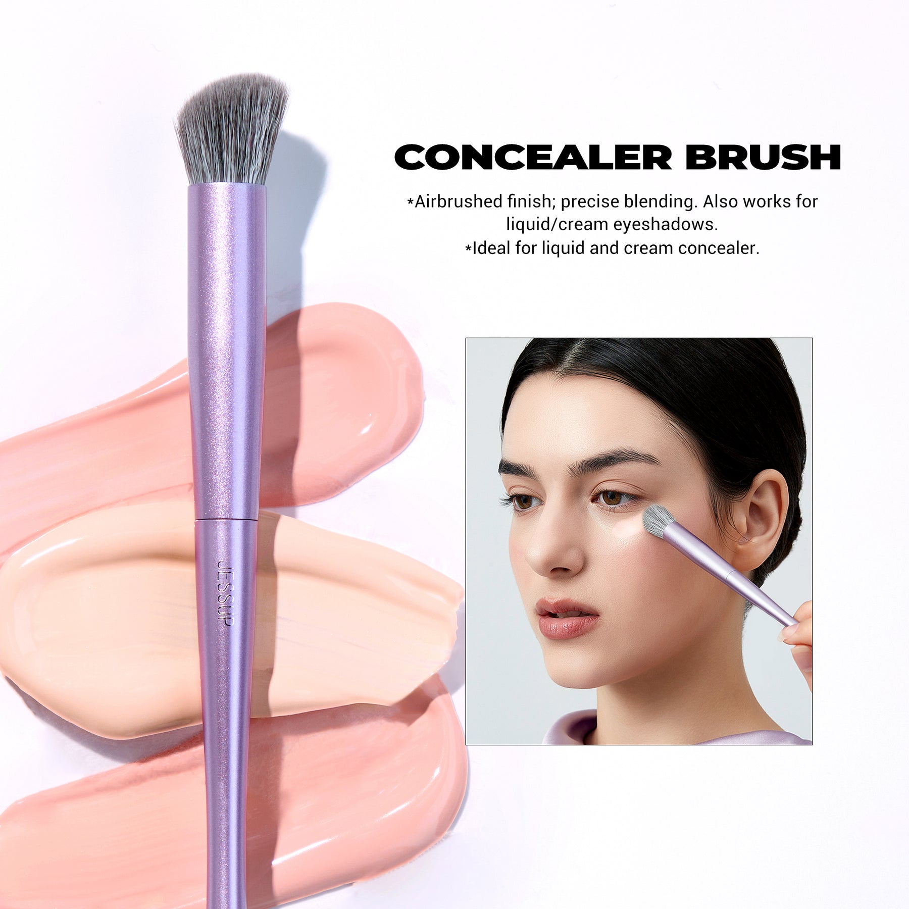 تتميز هذه المجموعة البنفسجية الفاخرة بتصميم جيسوب المنحني المميز، حيث تجمع بسلاسة بين العملية والأناقة. نقدم لكم مجموعة فرش الوجه المكونة من ثلاث قطع، مثالية لكريم الأساس، والكونسيلر، والبودرة، وأحمر الخدود، والكونتور، والهايلايتر. هذه الفرش متعددة الاستخدامات تقدم نتائج مثالية. مصنوعة من شعيرات صناعية فائقة النعومة، لطيفة على البشرة لتطبيق فاخر حقًا.