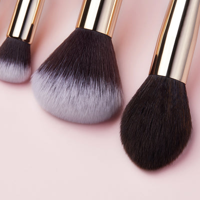 This essential set offers 15pcs (5 large face brushes & 10 precise eye brushes) of well functional and practical makeup brushes, including, powder/foundation brush, Blusher, highlighter contour brush, concealer, eyeshadow brush, eyeliner brush, eyelash brush, blending brush, and angled brush. We are keen to satisfy all your general makeup needs. Perfect for professional artists and makeup beginners.