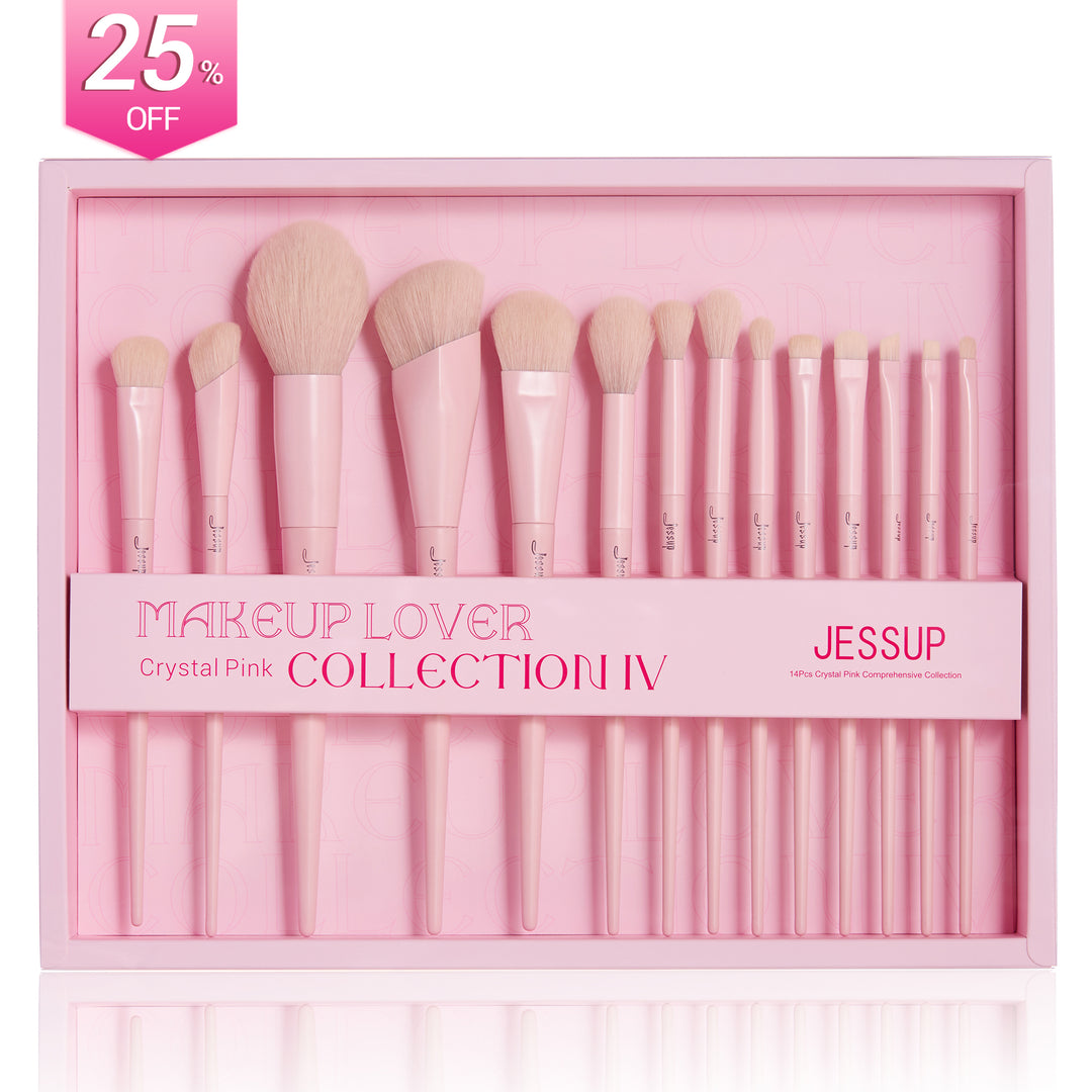 Jessup Crystal Pink Makeup Brushes Set Premium Vegan T495