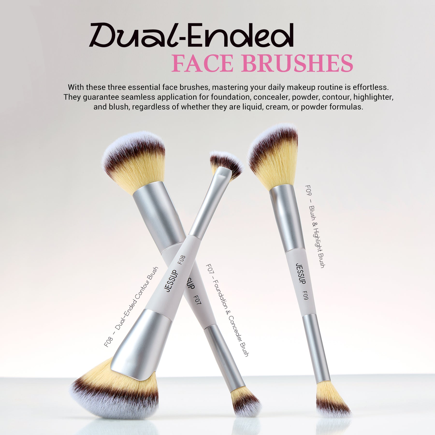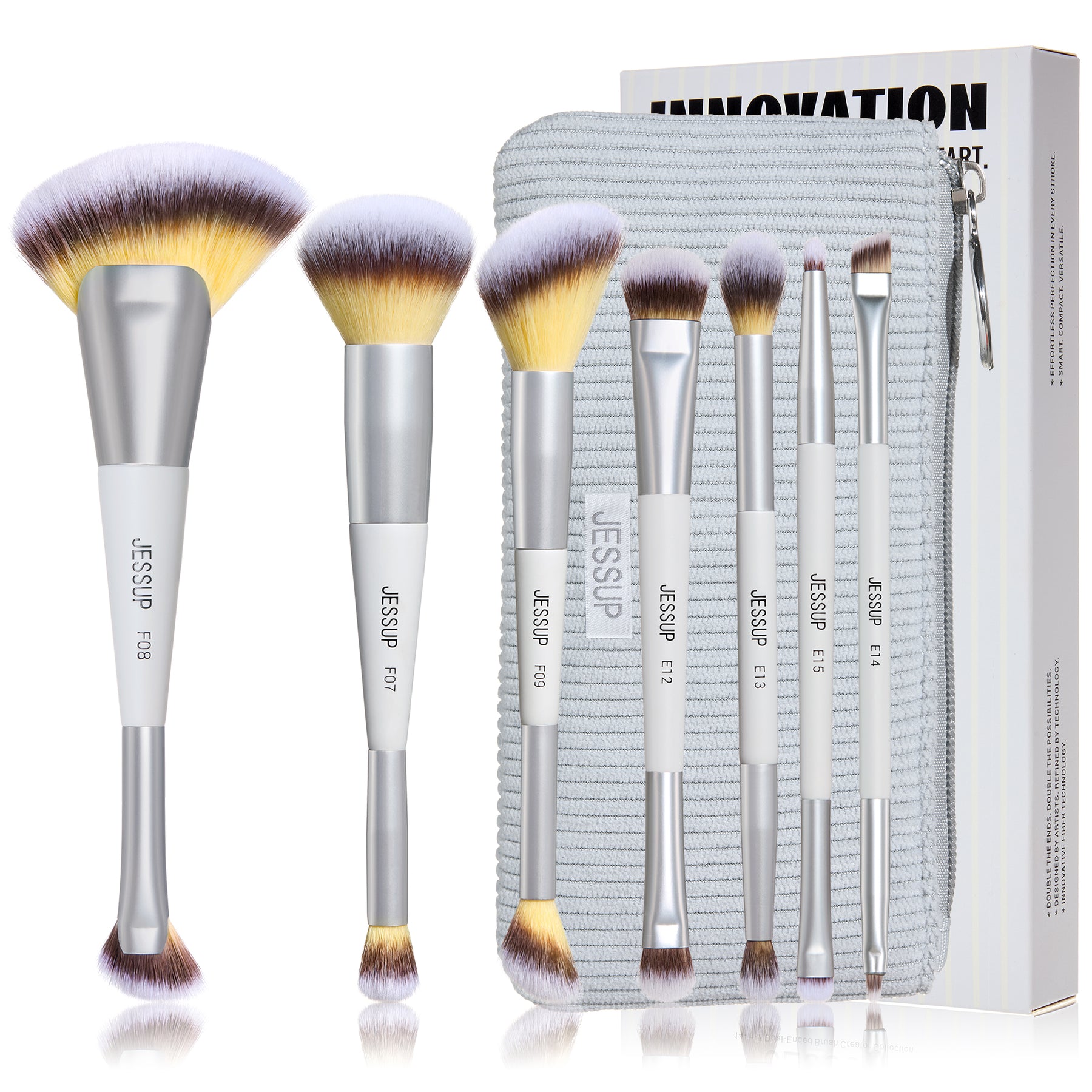 14-in-7 dual-ended brushes designed with innovation in hand and beauty in heart. Each brush features advanced fiber technology that delivers seamless blending, effortless precision, and modern sophistication. Experience the perfect harmony of design, craftsmanship, and creativity — your all-in-one tool to create, express, and embrace beauty.