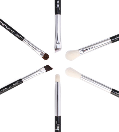 6PCS Jessup Black/Silver Professional Makeup Brushes Set Make up Brush Beauty Tools kit Eye Shader Liner natural-synthetic hair