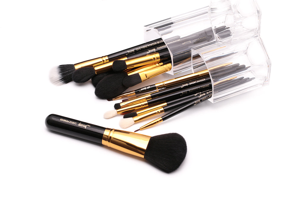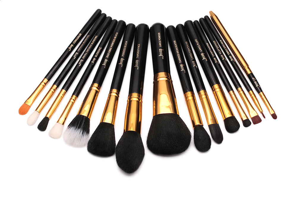 Makeup Brushes Set Powder Foundation Eyeshadow Eyeliner Lip Brush Tool Black and Gold