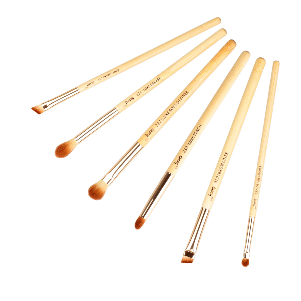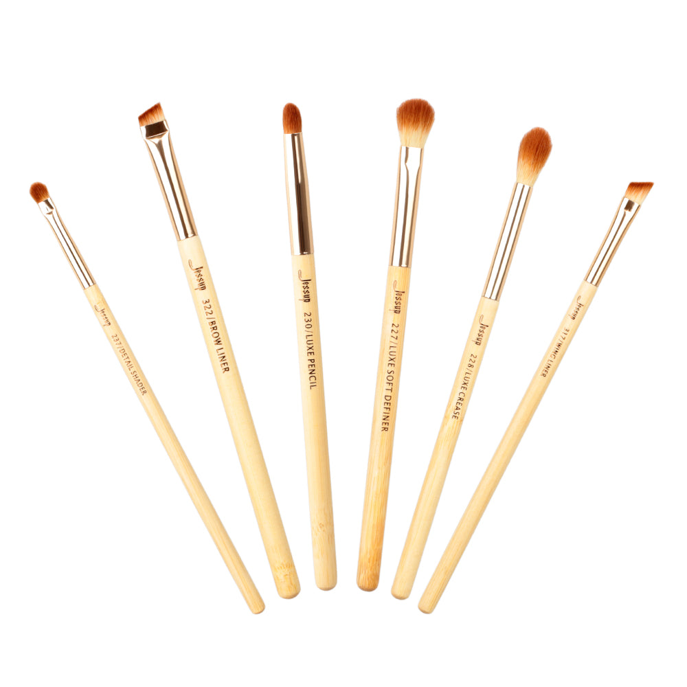 T141 6 pezzi Jessup Brand Beauty Bamboo Set di pennelli per il trucco professionale Kit di strumenti per pennelli per il trucco Eye Shader Liner