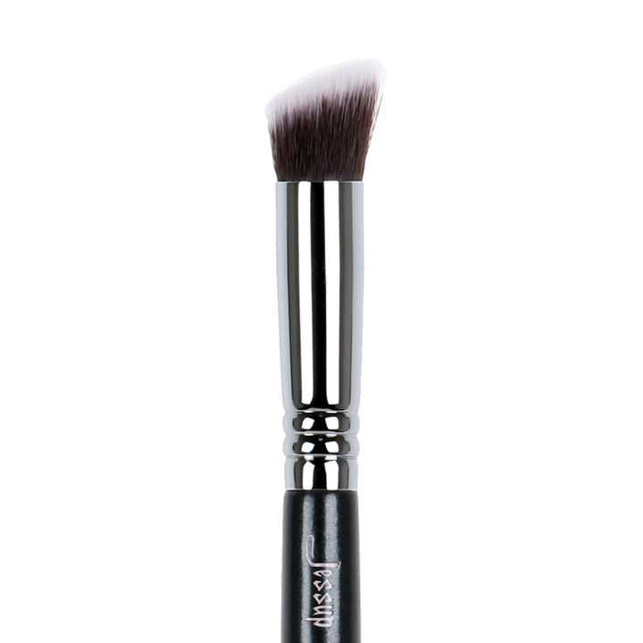 Questo pennello singolo viene utilizzato sul viso per applicare, sfumare o definire i prodotti in polvere. Aiuta a coprire le imperfezioni e utilizza la punta angolata per raggiungere le aree delicate con il correttore.