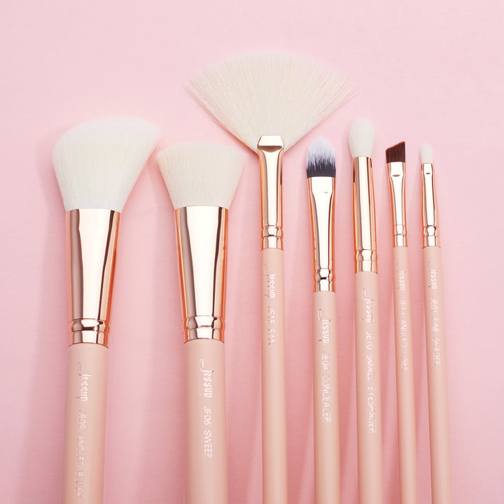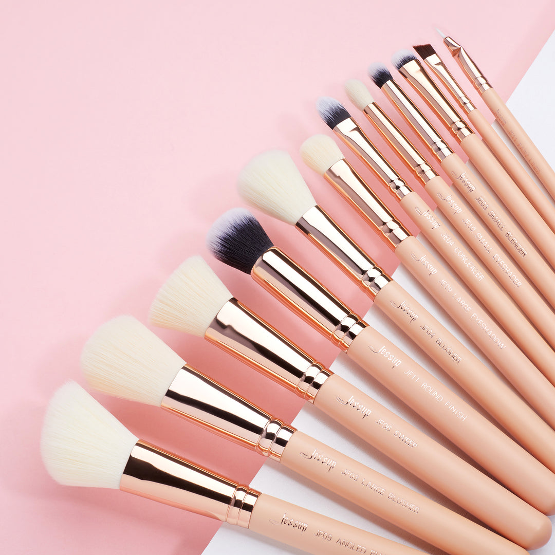 I set di pennelli per il trucco sono il modo migliore per ottenere tutti gli strumenti di cui hai bisogno a un prezzo ancora migliore. Questo kit include tutti i pennelli essenziali per un trucco completo del viso. Se stai appena iniziando la tua collezione di pennelli, questo sarà la scelta perfetta. Il colore rosa beige li rende anche molto carini.