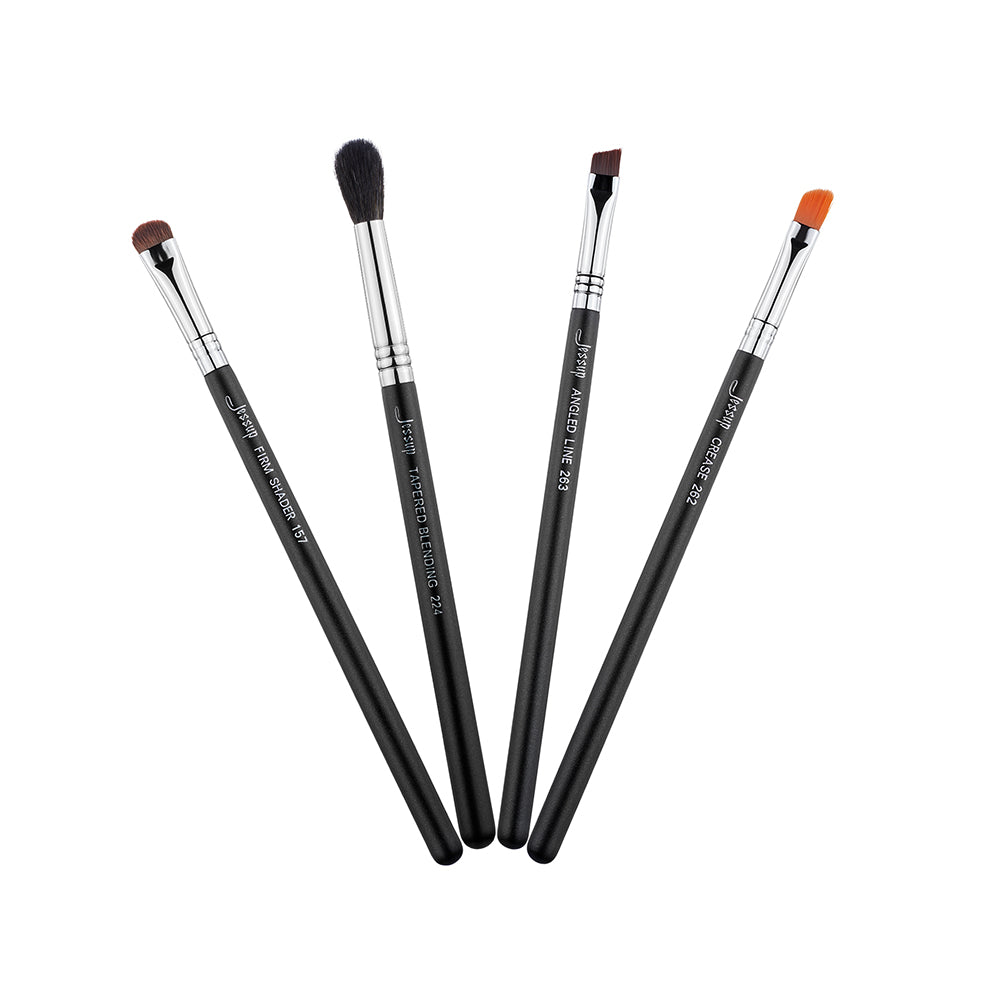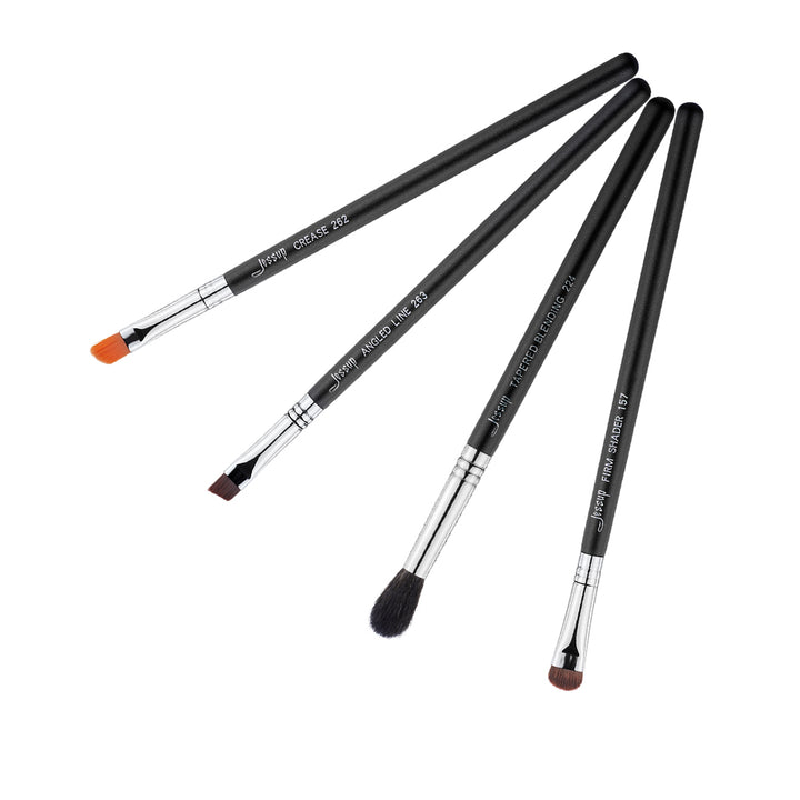 Nuovo set di 4 pennelli per il trucco Jessup neri/argento Strumenti di bellezza Pennello per il trucco cosmetico Pennello affusolato per sfumatura e piega angolato