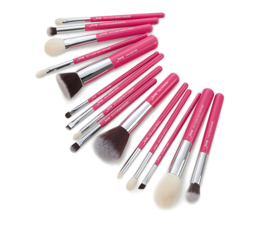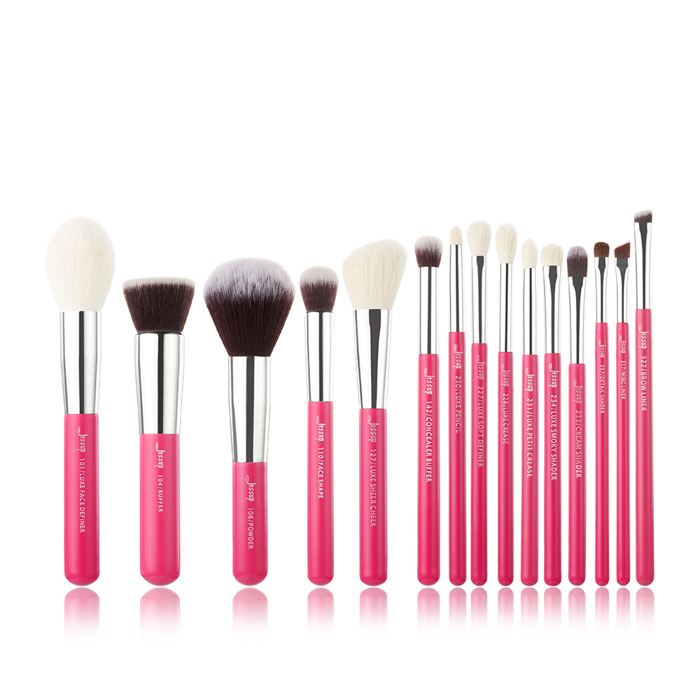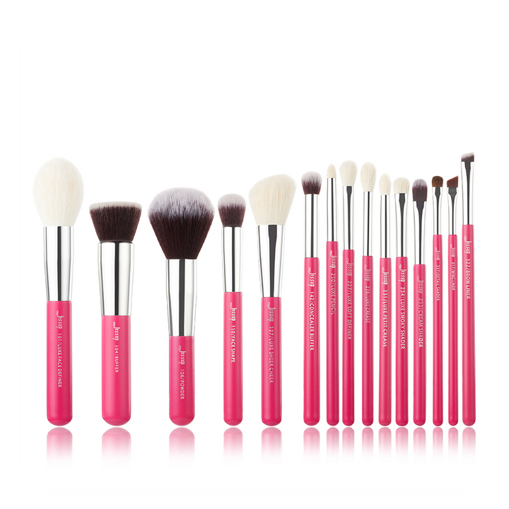 15 pezzi Jessup Rose-carmine/Argento Pennelli per il trucco professionali Set di strumenti di bellezza Kit di pennelli per il trucco Fondotinta Cipria Definitore Ombretto Liner