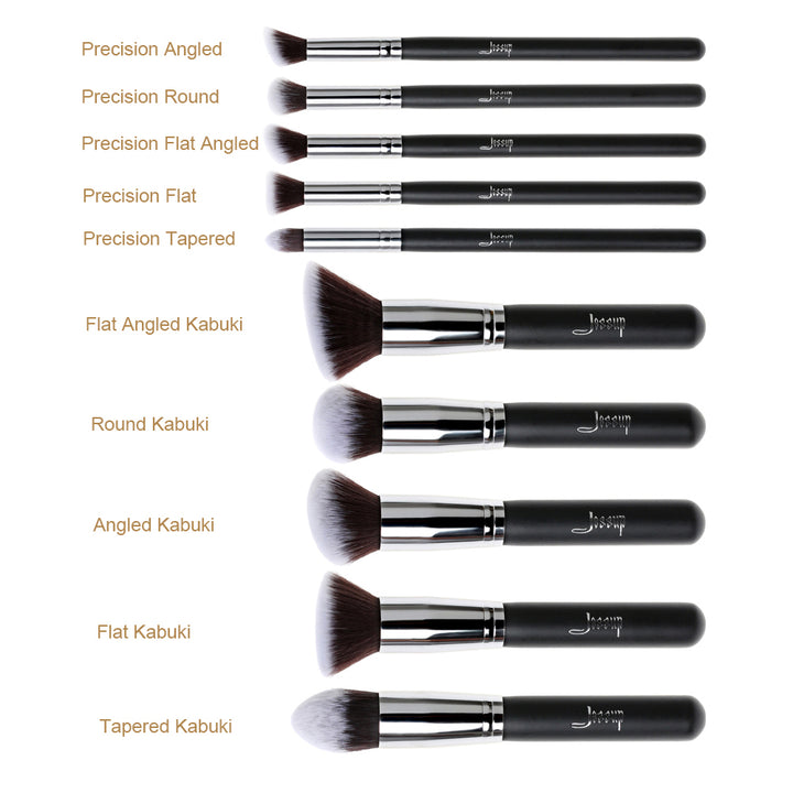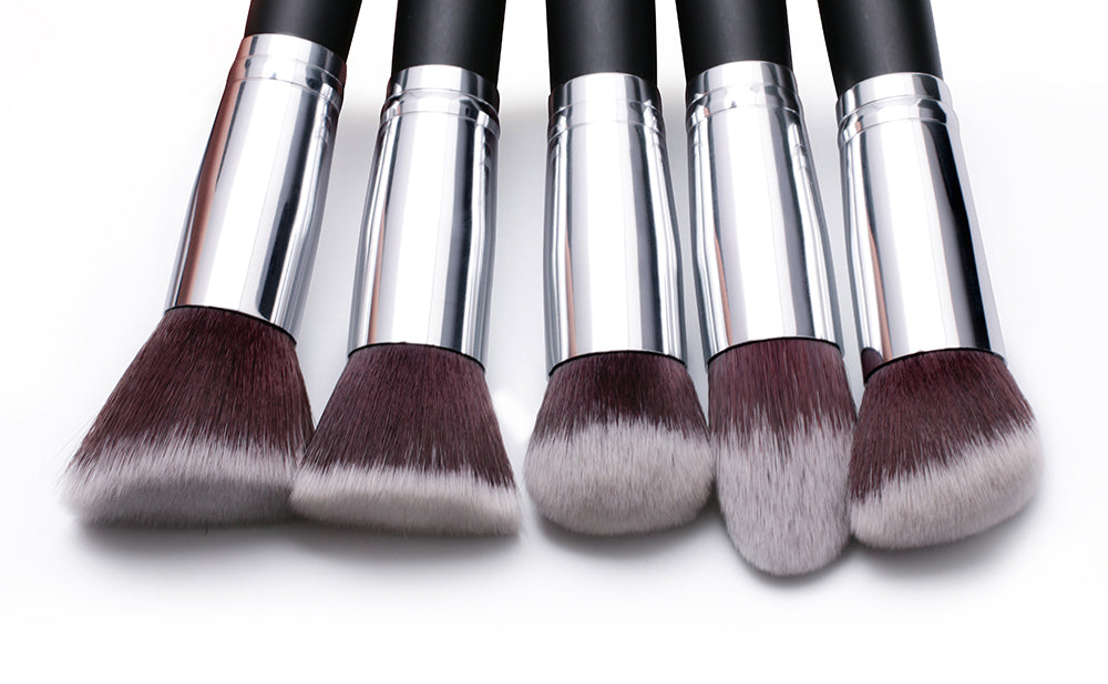 4. Flat Angled Kabuki: Blends foundation easily onto hard to reach areas of the face. Angle fits all areas of the face seamlessly. Works especially well on cheekbones and contours of the nose.